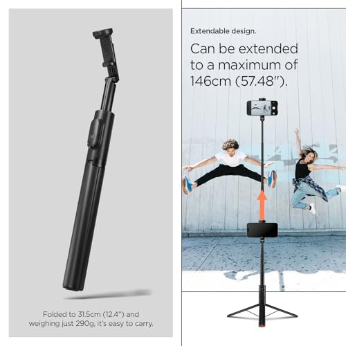 Spigen Automatischer Selfie Stick [WonderSnap] [Auto-Open] mit Bluetooth Fernbedienung Stativ kompatibel mit GoPro, iPhone 16/15/14/13 Serien, Galaxy S25/S24/S23 und Allen Smartphones – Schwarz
