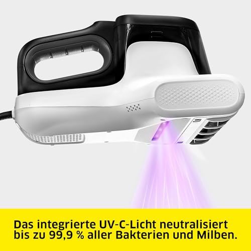 Kärcher Matratzenreiniger VCH 4 UVClean, hygienische Tiefenreinigung mit UV-C-Licht, Klopfwalze und Saugfunktion, Leistung: 500 Watt, Gewicht: 2,1 kg, beseitigt Milben und Bakterien, für Allergiker