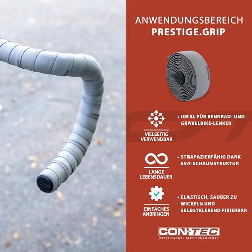 CONTEC Lenkerband Prestige.Grip, 2000x30x2,5 mm, aus EVA-Schaum und Gel, selbstklebend und rutschsicher, mit Klebestreifen und 2 Lenkerstopfen, Paar, grau