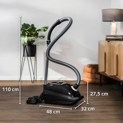 Siemens Staubsauger mit Beutel Z7.0 VSZ7X500, ideal für Allergiker, Hygiene-Filter, extrem leise, Bodendüse für Parkett, Teppich, Fliesen, XXL-Polsterdüse, XXL-Fugendüse, langes Kabel, 650W, schwarz