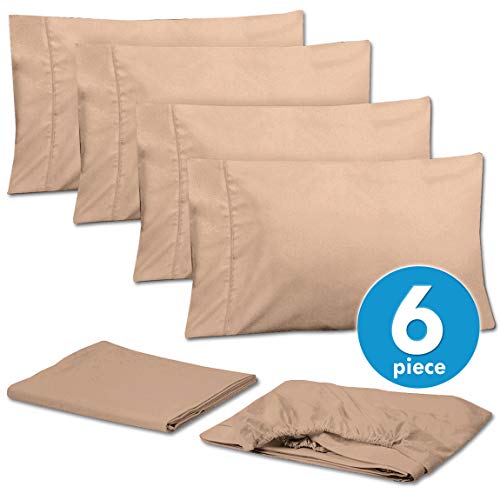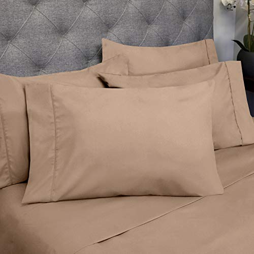 Sweet Home Collection Cal King Size Bettlaken, 6-teilig, Fadenzahl 1500, fein gebürstete Mikrofaser, tiefe Taschen, extra Kissenbezüge, Taupe, California Kingsize, 6 Stück