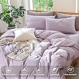 MooMee Bettwäsche-Set, 100 % gewaschene Baumwolle, leinenähnlich, strukturiert, atmungsaktiv, langlebig, weich, bequem (hellviolett, Doppelbett 172,7 x 228,6 cm)