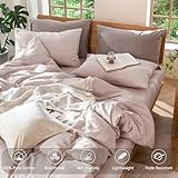 MooMee Bettbezug Bettwäsche-Set, 100% Gewaschene Baumwolle, Leinen, strukturiert, atmungsaktiv, langlebig, weich, bequem (graurosa, voll)