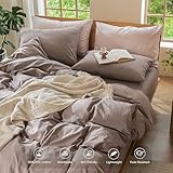 MooMee Bettwäsche-Set, 100 % gewaschene Baumwolle, leinenähnlich, strukturiert, atmungsaktiv, langlebig, weich, bequem (Meliertes Mauvenbraun, Cal King 264,2 x 248,9 cm)