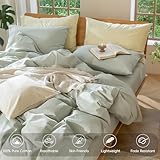 MooMee Bettwäsche-Set, 100 % gewaschene Baumwolle, leinenähnlich, strukturiert, atmungsaktiv, langlebig, weich, bequem (meliertes Salbeigrün, Palatial King/Oversized King 304,8 x 248,9 cm)