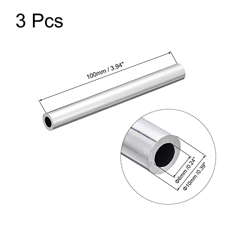 sourcing map 3 Stück 6063 Aluminium Rundrohr 6mm Innendurchmesser Alurohr 10mm Außendurchmesser Aluprofil Metallrohr 100mm Länge Aluminium Rohr für Industriebau Bastelprojekte Heimdekoration