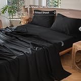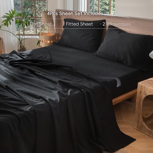 MooMee Bettwäsche-Set, 100 % gewaschene Baumwolle, leinenähnlich, strukturiert, atmungsaktiv, langlebig, weich, bequem, Full-Size, einfarbiges Schwarz
