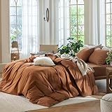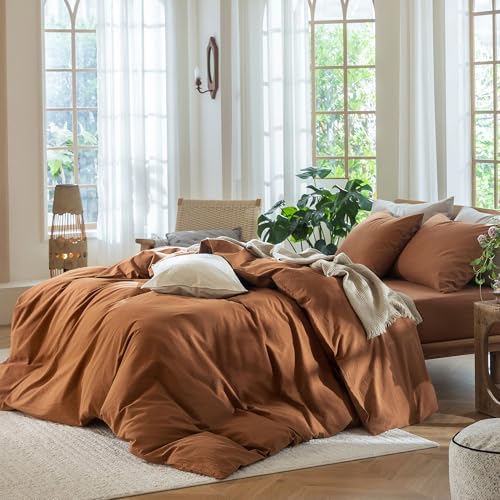 MOOMEE Bettwäsche-Set, 100 % gewaschene Baumwolle, leinenähnlich, strukturiert, atmungsaktiv, langlebig, weich, bequem (Dunkelorange, Super Queen)
