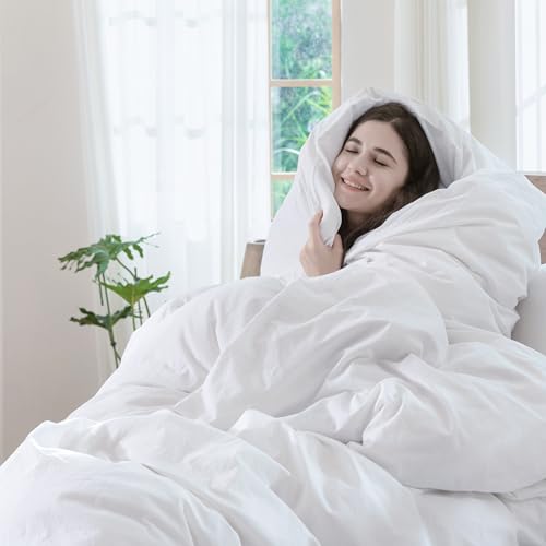 MooMee Bettwäsche-Set, 100% Gewaschene Baumwolle, leinenähnlich, strukturiert, atmungsaktiv, langlebig, weich, bequem (einfarbiges helles Weiß, 203,2 x 228,6 cm)
