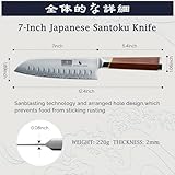 HOSHANHO 7-Zoll-Santoku-Messer, professionelles japanisches Kochmesser aus Kohlenstoffstahl, rasiermesserscharfes Küchenmesser mit ergonomischem Griff aus rotem Sandelholz – Geschenkbox