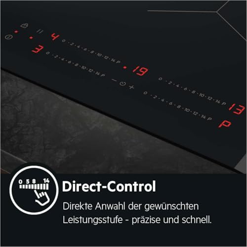 AEG Induktionskochfeld autark 60cm – 4 Flex-Kochzonen mit Bräterzone – 14 Stufen + Powerfunktion – Facettenrahmen – Timer – Touch-Bedienung – kompatibel mit Haubenautomatik – TO64IC00FB