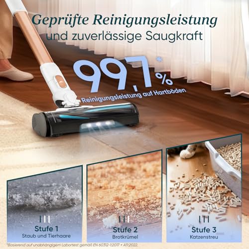 | weitere spezifikationen | Garantie: 3 Jahre Motor-Garantie.Technologie: Anti-Haar-Verwicklung-Technologie.Laufzeit für 75 m².Reinigungsleistung: Reinigungsleistung für Hartböden beträgt 99,7 %.LED-Licht: Die Bodenbürste hat LED-Licht.Filterung: 99,9 % Filterleistung.Gewicht: Leichtgewichter Staubsauger mit nur 2,8 kg.Entleerung und Wartung des Staubbehälters: Hygienische Entleerung und Wartung.Kundenservice: Lebenslanger Kundendienst über support.de@levoit.com |