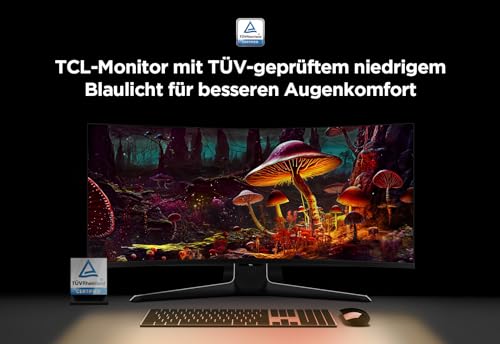 TCL 34R83Q 34 Zoll WQHD Mini-LED 1500R Curved Gaming Monitor 170Hz, 1ms Reaktionszeit, AMD FreeSync, Auflösung 3440 x 1440, 21:9, 1600nits, Display HDR1400, Flickerfrei, 90W Type-C