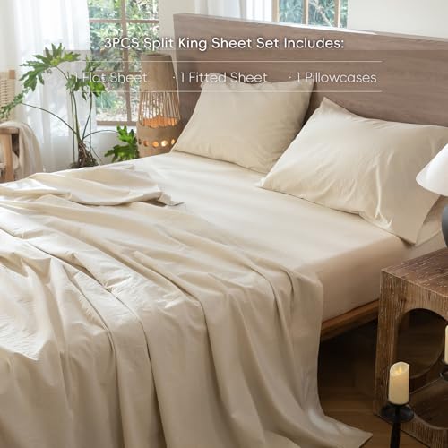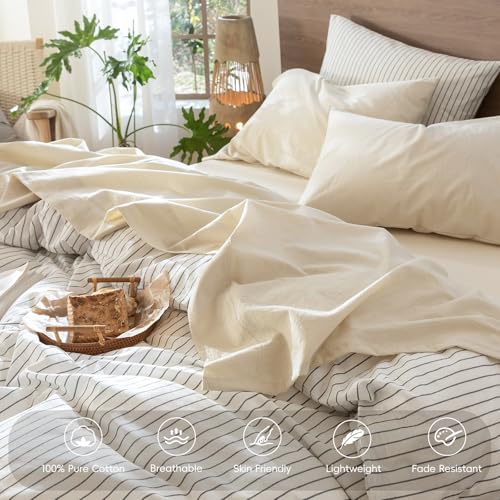 MooMee 100% Gewaschene Baumwolle Bettwäsche Set Leinenoptik strukturiert atmungsaktiv langlebig weich bequem Mandelmilch Grau Twin Size