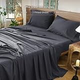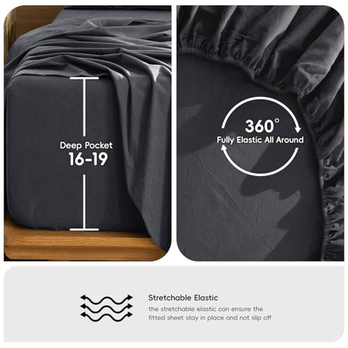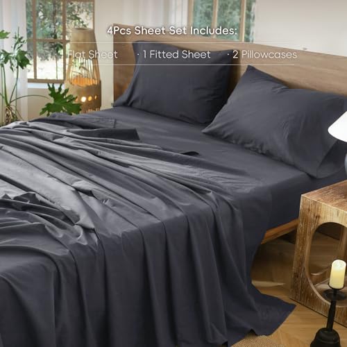 MooMee 100% Baumwolle gewaschen, Leinenoptik strukturiert, atmungsaktiv, langlebig, weich und bequem, Dunkelgrau Uni King Size