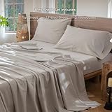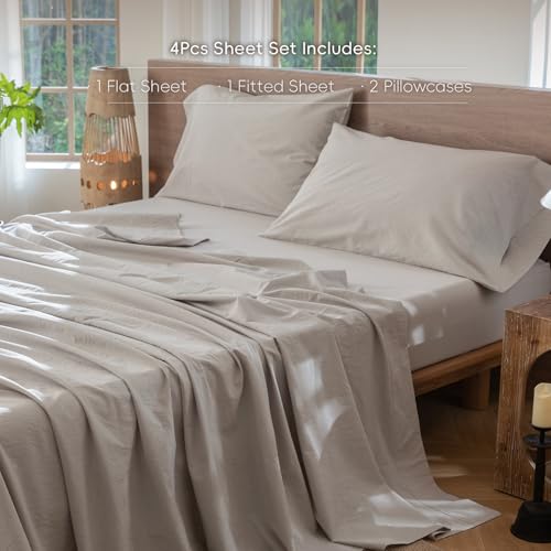 MooMee 100% Gewaschene Baumwolle, Leinenoptik, strukturiert, atmungsaktiv, strapazierfähig, weich und bequem, einfarbig, Hellbraun, King-Size