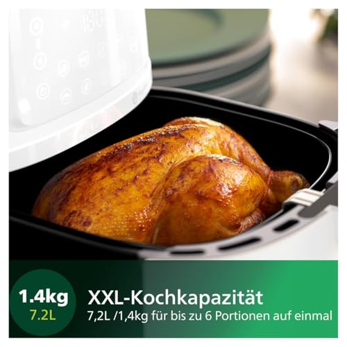 Philips Airfryer 5000-Serie XXL, 7,2L (1,4Kg) - 6 Portionen, 16-in-1 Airfryer, Wifi verbunden, 90% weniger Fett mit Rapid Air Technologie, HomeID App, Weiß(HD9285/00)