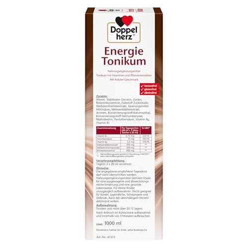 Doppelherz Energie Tonikum - Mit B-Vitaminen, Extrakte aus Weißdornfrüchten, Melissenblätter sowie Konzentrat aus Rotwein - 1000 ml