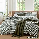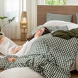 MooMee Gingham-Bettwäsche-Set, 100 % gewaschene Baumwolle, leinenähnlich, strukturiert, atmungsaktiv, langlebig, weich, bequem, modernes Karomuster (Waldgrünes Gingham, Kingsize, 264,2 x 228,6 cm)