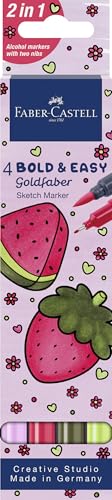 Faber-Castell 164816 - Goldfaber Sketch Marker, 4 Alkohol Marker mit Brush Spitzer und Fineliner Spitze