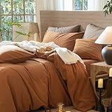 MooMee Gewelltes gestreiftes Bettbezug-Set, 100 % gewaschene Baumwolle, leinenähnlich, strukturiert, atmungsaktiv, langlebig, weich, bequem (Dunkelorange, Übergröße, Queen-Size-Größe 248,9 x 248,9 cm)