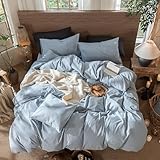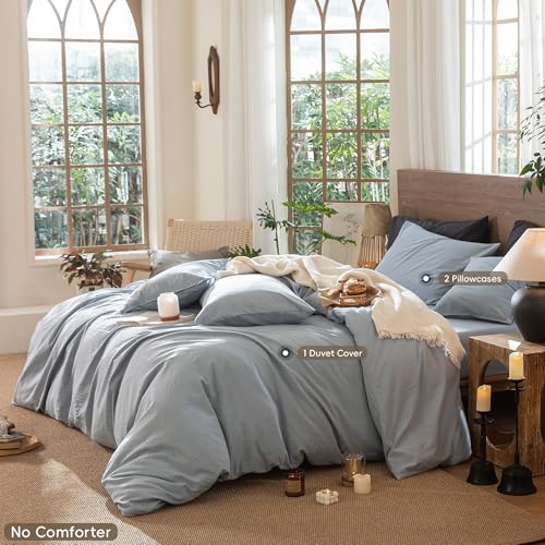 MooMee Gewelltes gestreiftes Bettbezug-Set, 100 % gewaschene Baumwolle, leinenähnlich, strukturiert, atmungsaktiv, langlebig, weich, bequem (Kornblumenblau, Größe 203,2 x 228,6 cm)