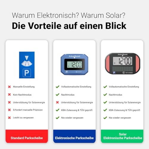 VENTON [Test SEHR GUT, Note 1.1] Elektronische Solar Parkscheibe schwarz mit Zulassung, Automatische Digitale Parkuhr Elektrisch für alle PKW, Auto Zubehör Innenraum, Digital Solar-Parkscheibe