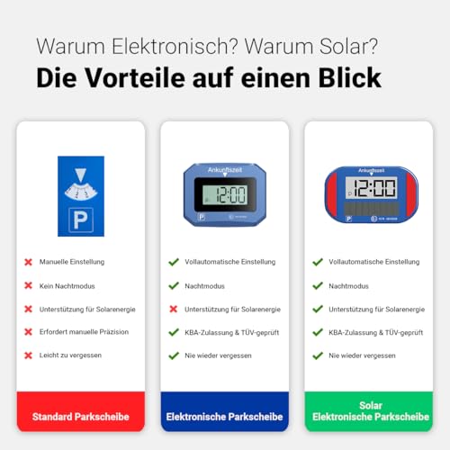 VENTON [ Test SEHR GUT, Note 1.1 *] 3 Stück Elektronische Solar Parkscheibe mit Zulassung, Automatische Digitale Parkuhr Elektrisch für alle PKW, Auto Zubehör Innenraum & Gadgets Solar-Parkscheibe