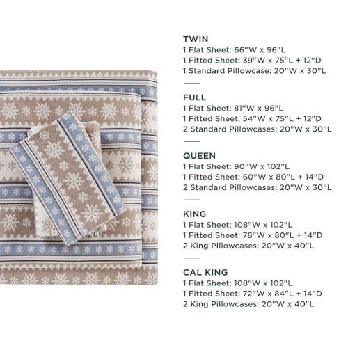 WOOLRICH Warme weiche Flanell-Bettwäsche mit 35,6 cm tiefer Tasche für die kalte Jahreszeit, gemütliches Bettwäsche-Set, passender Kissenbezug, Queensize, Blaue Schneeflocke