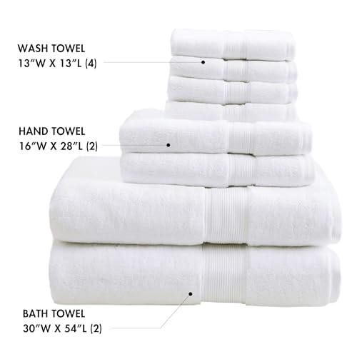Madison Park Luxuriöse türkische Badetücher, 800 g/m², 100% Baumwolle, sehr saugfähig, lang, übergroß, Leinen-Baumwolle, 8-teilig, enthält 2 Badetücher, 2 Handtücher und 4 Waschtücher, Weiß