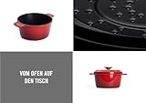 Woll Iron Gusseisen Topf mit Deckel und Silikongriffen - Induktiv -, Ø 20 cm - Brotbacktopf - Schmortopf - Geeignet für alle Herdarten, Eisenguss, backofenfest bis zu 250°, rot