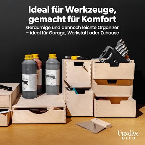 Creative Deco Schubladenbox Schubladenelement | 5 Schubladen | 36 x 20 x 28,5 cm (+/- 1 cm) | Mini-Kommode für Kleinigkeiten aus Birken-Sperrholz | Ordnungssystem für Lagerung, Decoupage & Dekoration