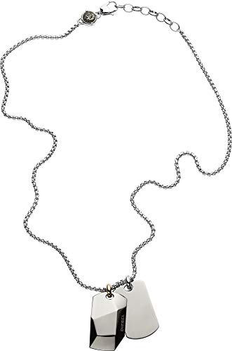Diesel Halsband Für Männer Doppelte Hundemarken, 60Cm+5Cm Silber Edelstahl Halsband, DX1143040