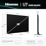 Hisense 85U7Q Fernseher 85 Zoll, 4K Mini LED ULED, Smart TV, Hi-View AI Engine, 144Hz Game Mode Pro, FreeSync Premium, Built in Subwoofer, Dolby Vision IQ Atmos, Airplay, Sprachsteuerung[2025]