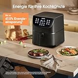 | weitere spezifikationen | 5,5L großer Korb, 11 voreingestellten Programmen; Großes Berührungsempfindliches LED-Display; Vorheizen- & Warmhaltenfunktion; Shake-Erinnerung; mit spülmaschinenfesten Antihaft-Frittierkörben (FDA- und PFOA-frei); mit Rezeptbuch |
