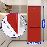 Bomann® Kühlschrank mit Gefrierfach | Energieklasse E | 143cm | Kühl Gefrierkombination leise 39 dB | 3 Ablagen & 3 Schubladen | Türanschlag wechselbar | 175L Kühlgefrierkombi | KG 320.2 rot