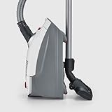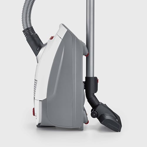 SEVERIN Bodenstaubsauger mit Beutel, leistungsstarker und leiser Staubsauger mit 360° Rollen, HEPA Filter, Zubehör für Teppich & Hartböden, weiß, rot, BC 7047