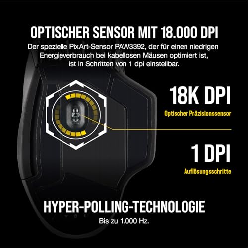 CORSAIR DARK CORE RGB PRO Wireless FPS/MOBA Gaming Maus - 18.000 DPI - 8 Programmierbare Tasten - Sub-1ms Wireless - iCUE Kompatibel - PC, Mac, PS5, PS4, Xbox - Schwarz