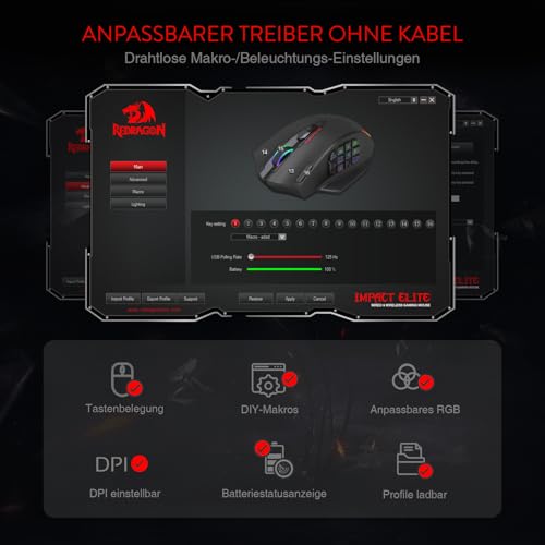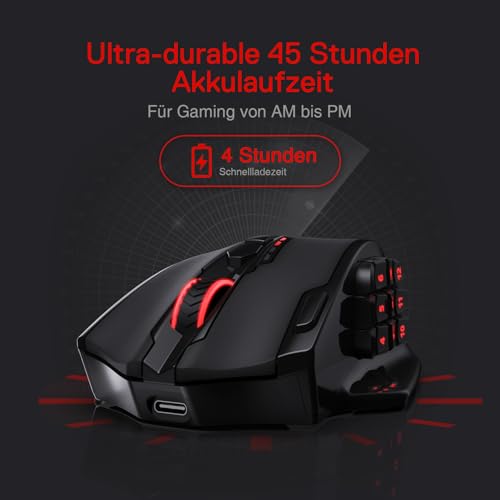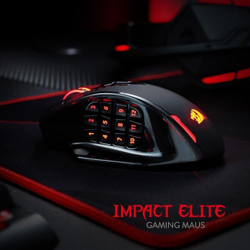 Redragon M913 Impact Elite Wireless Gaming Maus, 16000 DPI Verkabelte/Kabellose RGB Maus mit 20 Programmierbaren Tasten, 45 Std. Batteriebetrieb und Optischem Pro-Sensor, 12 Seitentasten MMO-Maus