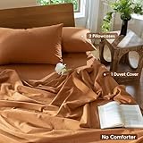 MooMee Bettwäsche-Set, 100 % gewaschene Baumwolle, leinenähnlich, strukturiert, atmungsaktiv, langlebig, weich, bequem (Solid Burnt Orange, Cal King 264,2 x 248,9 cm)