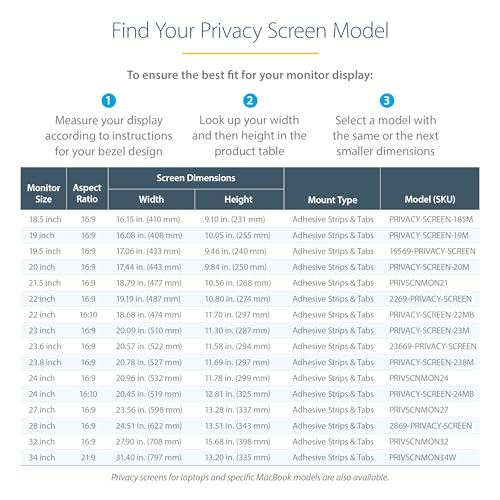 StarTech.com Monitor Privacy Screen for 19 inch PC Display Computer Security Filter Blue Light Reducing Protector Film 16:10 Widescreen Matte/Glossy +/-30 Degree Viewing Blickschutzfilter fĂĽr Bildschirme 2-Wege entfernbar Halter/Klebepunkte 48,3 cm Breitb (PRIVACY-SCREEN-19M)