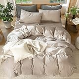 MooMee Bettbezug Bettwäsche-Set, 100 % gewaschene Baumwolle, leinenähnlich, strukturiert, atmungsaktiv, langlebig, weich, bequem (Taupe, Cal King)