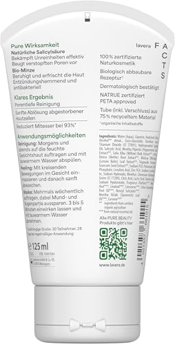 lavera Pure Beauty 3in1 Reinigung, Peeling & Maske – Naturkosmetik gegen Unreinheiten – vegane Gesichtsreinigung für unreine Haut & Mischhaut - 125ml