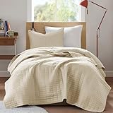 Comfort Spaces Kienna Steppdecken-Set, luxuriös, doppelseitig genäht, für alle Jahreszeiten, leicht, Tagesdecke, Bettwäsche, passende Kissenbezüge, Twin/Twin XL (167,6 x 228,6 cm), elfenbeinfarben