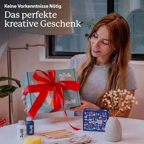 MaterialClay, paint, gloss varnish air dry clay, gloss varnish, white acrylic paint, pottery tool set, paintbrushes, step-by-step pottery guide, sponge